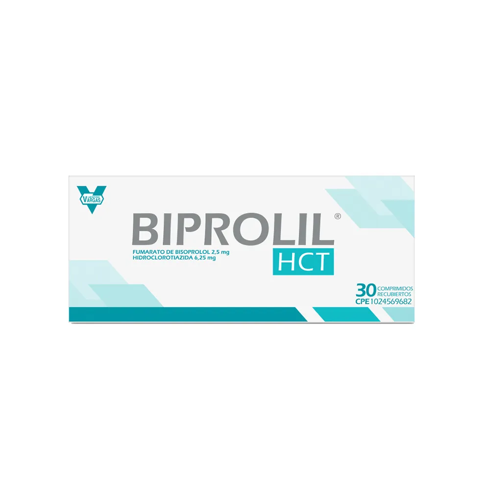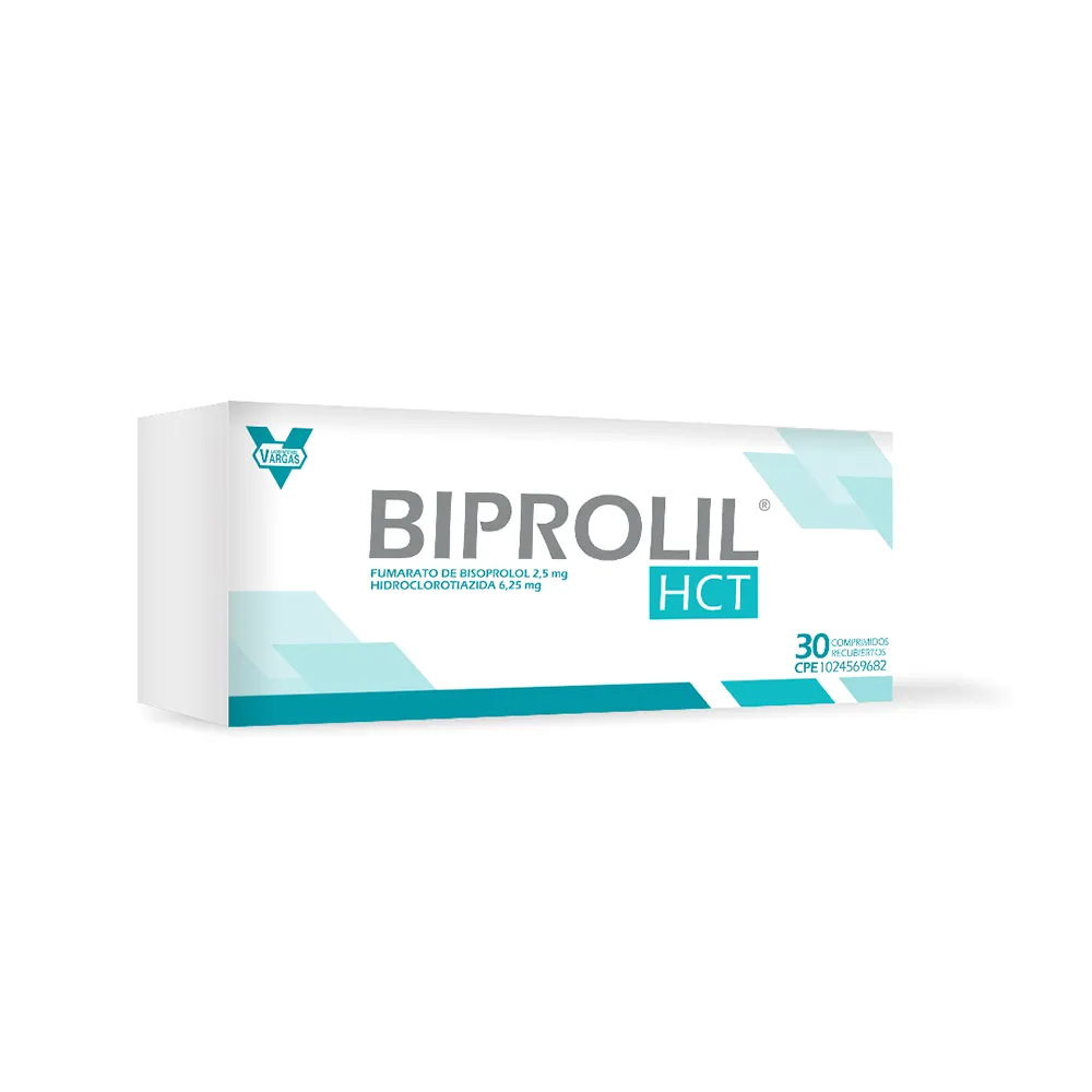 Composición:Cada comprimido recubierto contiene: Fumarato de Bisoprolol 2,50mg, Hidroclorotiazida 6,25mg, Almidón pregelatinizado 6,30mg y Excipientes c.s.p.