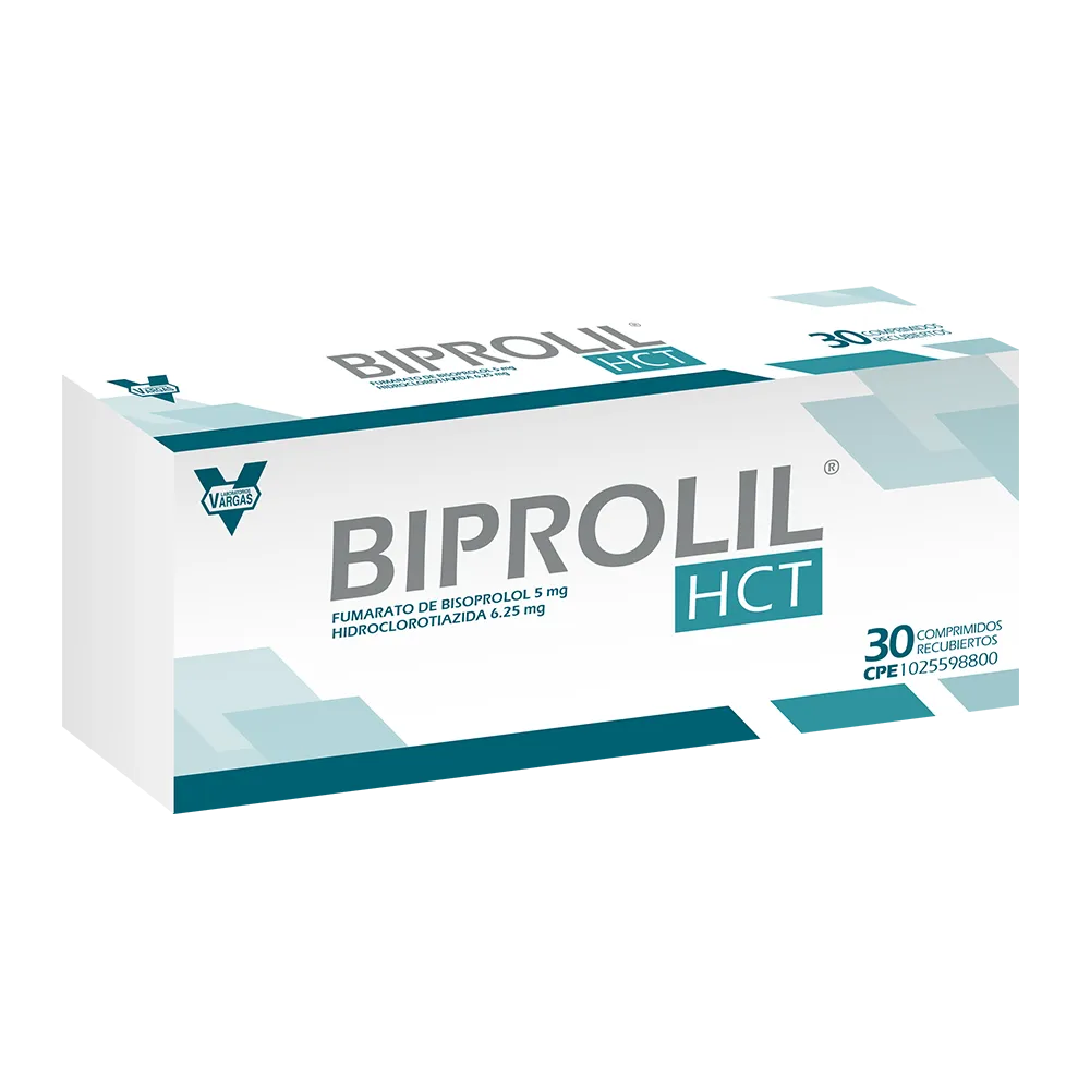 Composición:Cada comprimido recubierto contiene: Fumarato de Bisoprolol 5,00mg, Hidroclorotiazida 6,25mg, Almidón pregelatinizado 9,90mg y Excipientes c.s.p.